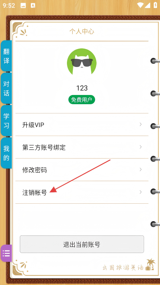 3、在个人中心页面,点击【注销帐号】选项,可进入账号注销的确认流程。