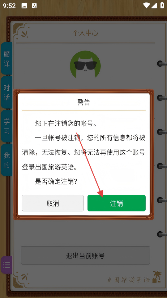 4、在账号注销警告弹窗中,确认注销账号可点击【注销】按钮,注销后所有信息将被清除且无法恢复。