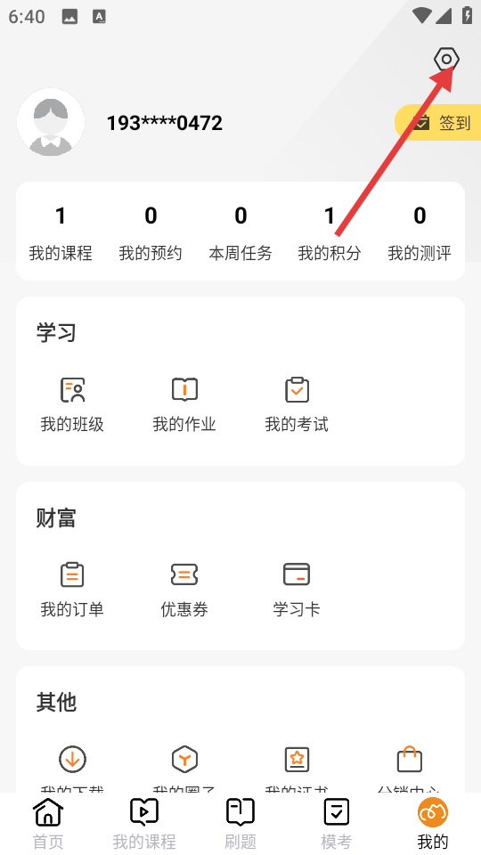 1、在“我的”页面,点击右上角的设置图标,进入设置页面。
