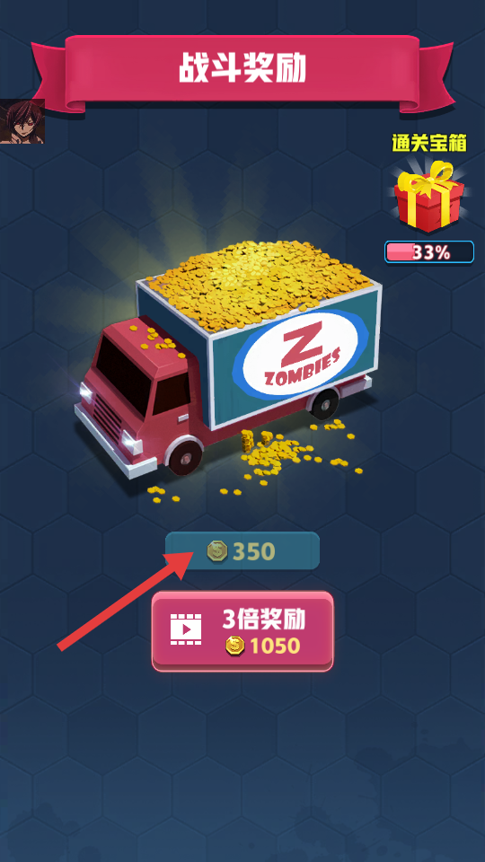 4、战斗结束后,领取【350】金币的战斗奖励,积累游戏资源。