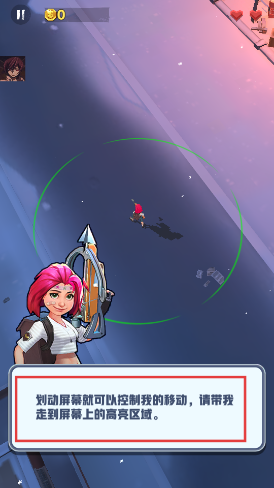 1、划动屏幕控制角色移动,将角色带到屏幕上的高亮区域,开始游戏进程。