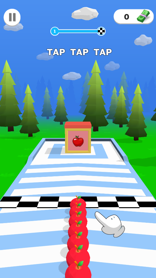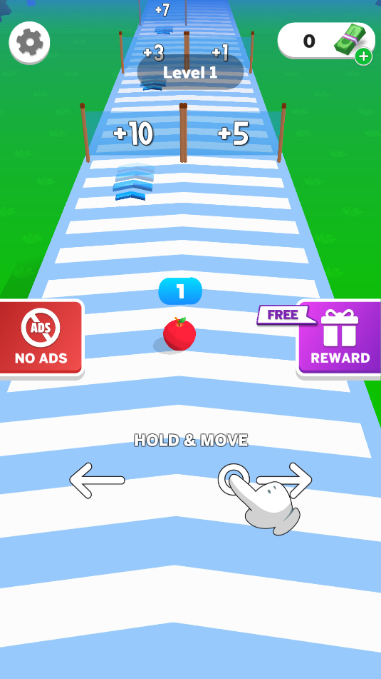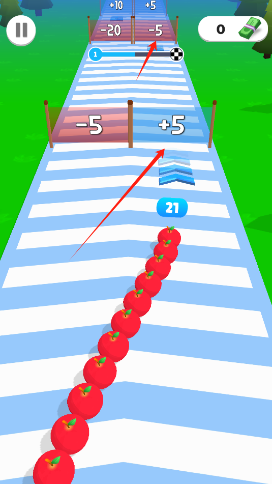 2、滑动屏幕控制苹果移动,选择经过增加数量的门,尽量选择减数少的门。