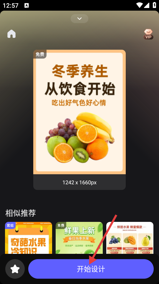 3、在详情页面,点击【开始设计】按钮,进入模板设计编辑页面。
