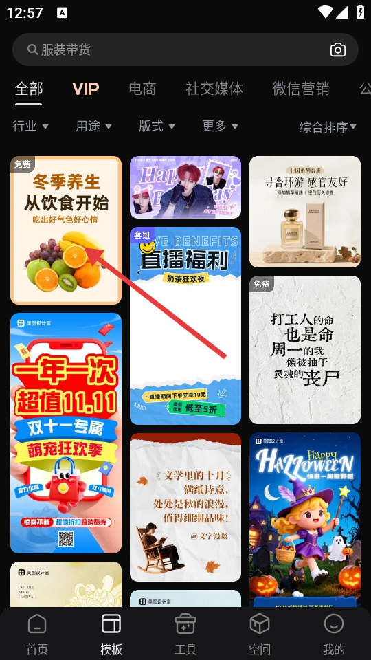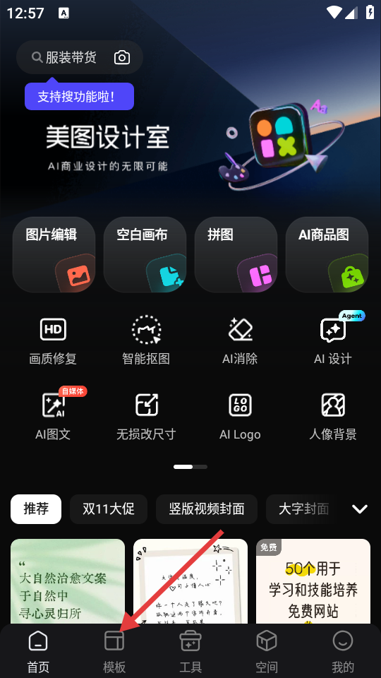 1、在软件首页,点击底部导航栏的【模板】选项,进入模板选择页面。