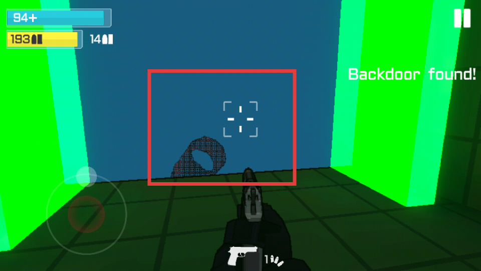 4、在场景中寻找带有瞄准标记的区域,射击后可触发【Backdoor-found!】,开启新的路径或获得特殊奖励。