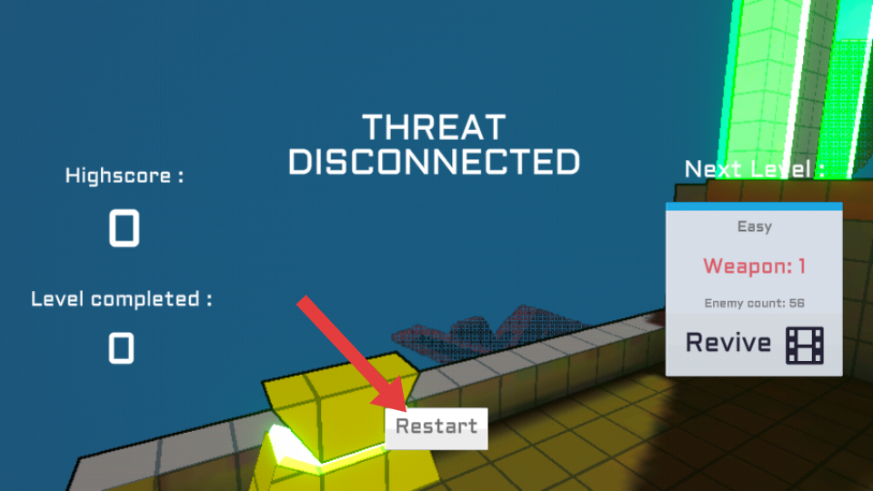 4、关卡结束后,若需重新挑战,点击【Restart】按钮,可再次开启【THREAT-DISCONNECTED】的冒险。