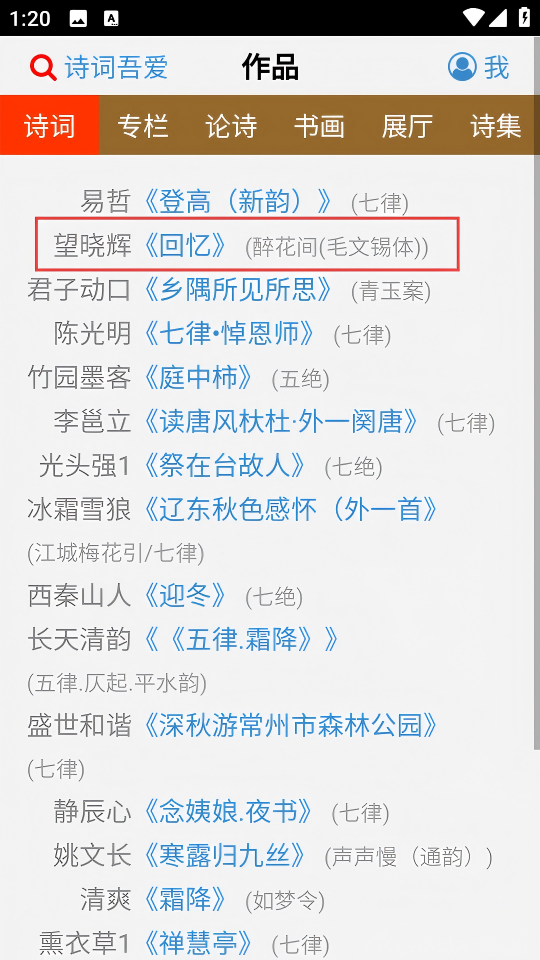 2、在作品列表页,点击目标作品,可进入该诗词的详情页面。