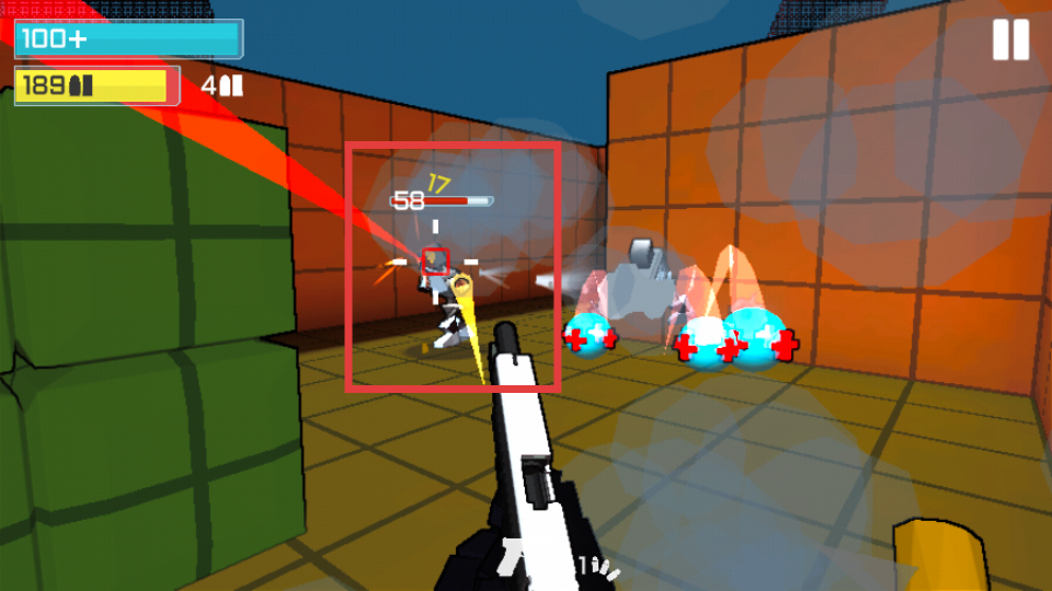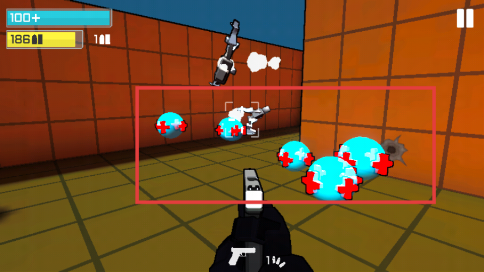 3、射击带有红十字的蓝色球体,可获取生命补给,维持生存,继续在关卡中推进。