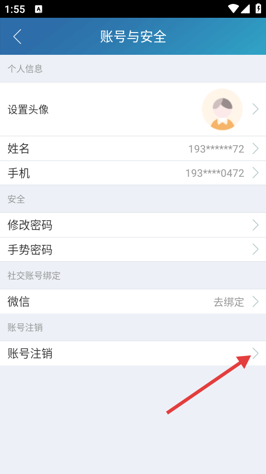 3、在账号与安全页面,点击【账号注销】选项,进入账号注销确认页面。