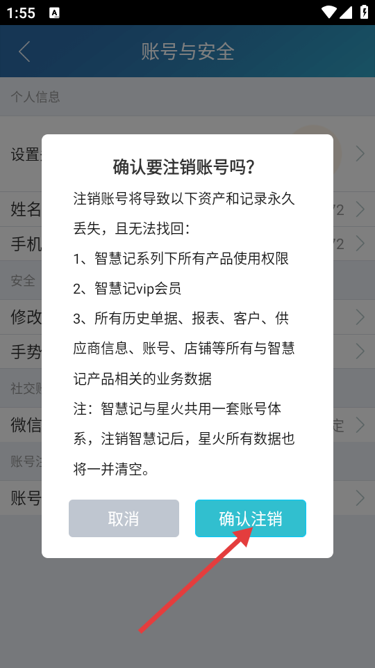 4、在账号注销确认页面,点击【确认注销】按钮,完成账号注销操作。