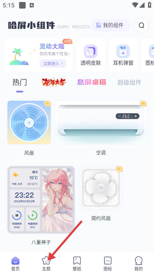 1、在软件首页,点击底部导航栏的【主题】选项,进入主题广场页面。