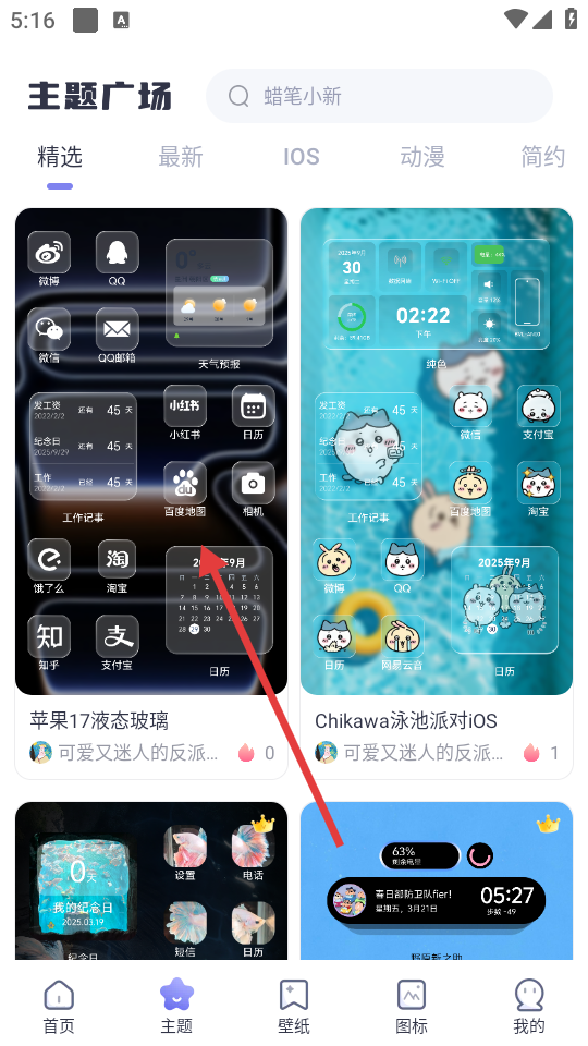 2、在主题广场页面,选择喜欢的主题,点击进入该主题的详情页面。