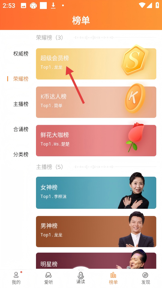 2、在【榜单】页面,点击【超级会员榜】榜单。