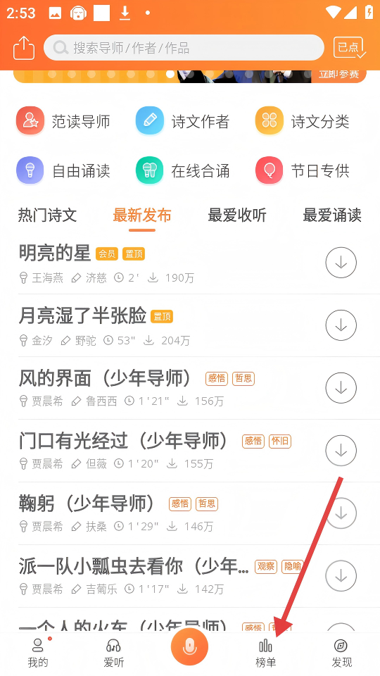 1、在应用主界面点击【榜单】,可进入各类榜单页面。