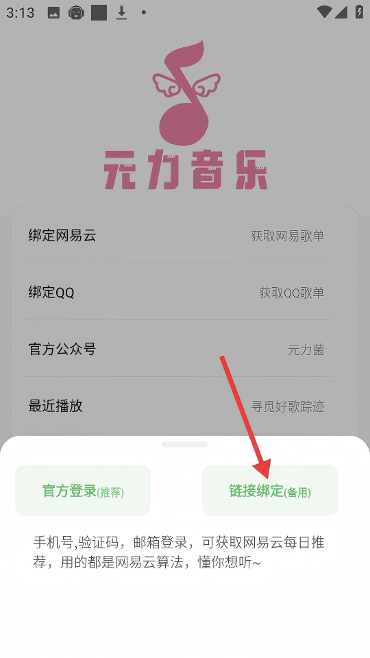 3、点击【链接绑定(备用)】进行网易云歌单绑定操作。
