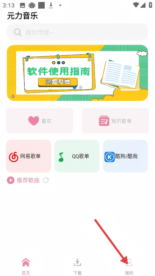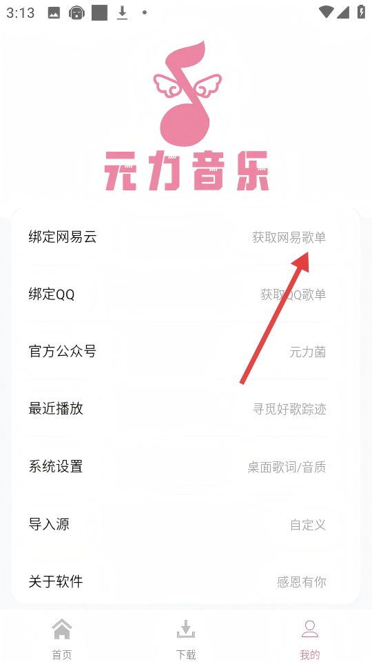 2、在元力音乐【我的】页面,点击【获取网易歌单】。