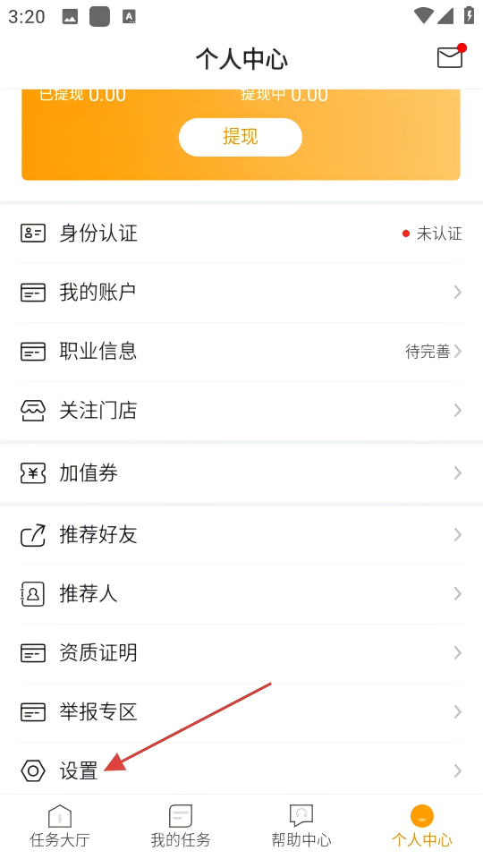 2、在个人中心页,点击【设置】选项,可进入设置界面。