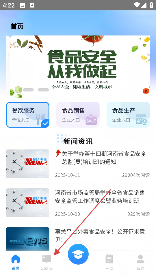1、在首页底部点击【知识库】选项,进入知识库页面。