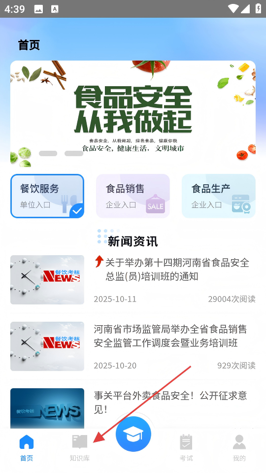 1、在首页底部点击【知识库】选项,进入知识库页面。