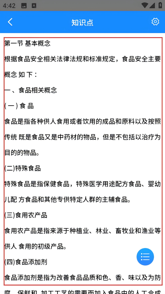 4、在知识点详情页,可查看食品安全相关的基本概念。