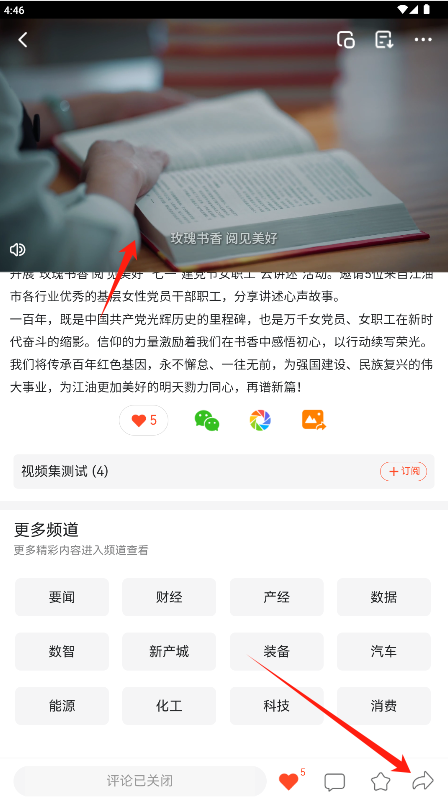 2、在页面浏览推荐内容,选择目标视频如“玫瑰书香‘阅’见美好”活动报道,点击封面进入播放页。