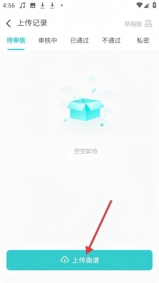 3、在上传记录页面,点击【上传曲谱】可进入上传曲谱页面。