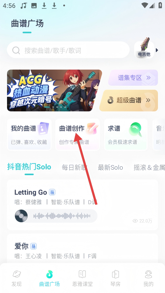 2、在曲谱广场页面,点击【曲谱创作】可进入创作页面。