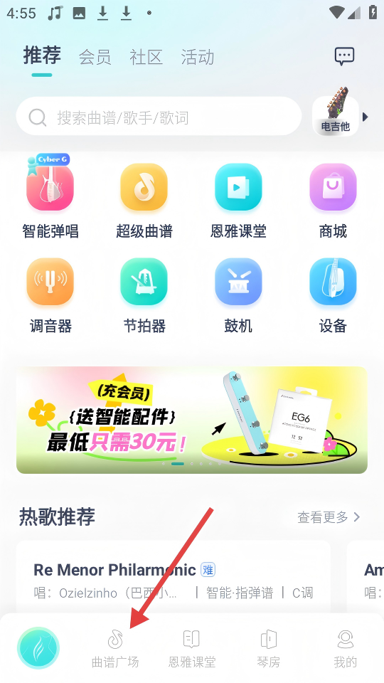 1、点击底部【曲谱广场】可进入曲谱广场页面。