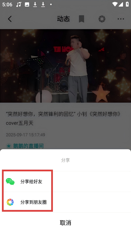 4、可选择【分享给好友】或【分享到朋友圈】分享动态。
