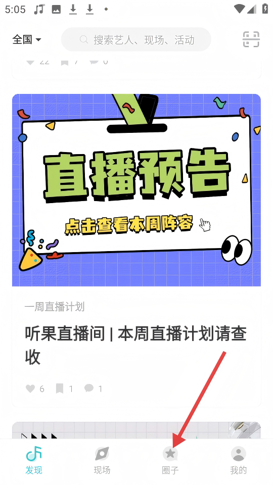 1、进入软件,点击底部【圈子】可进入圈子页面。