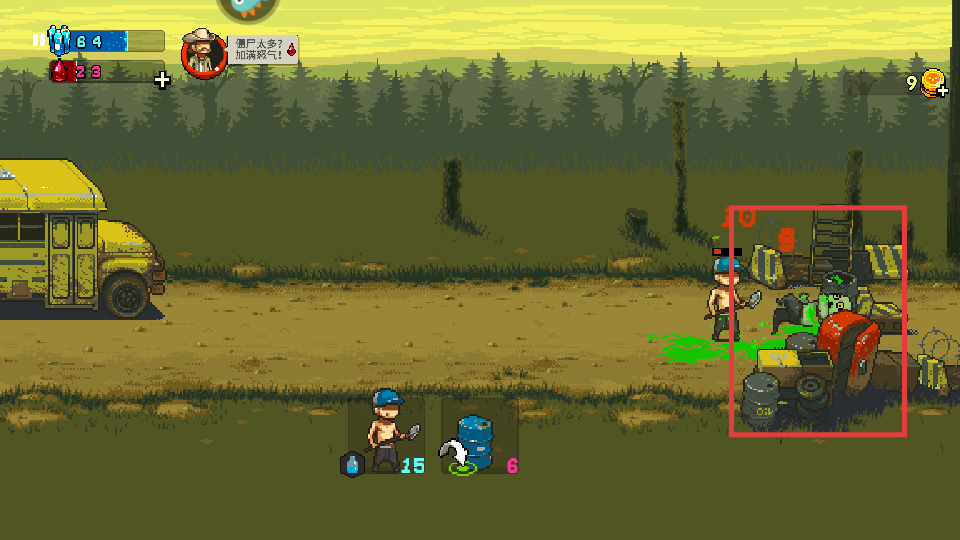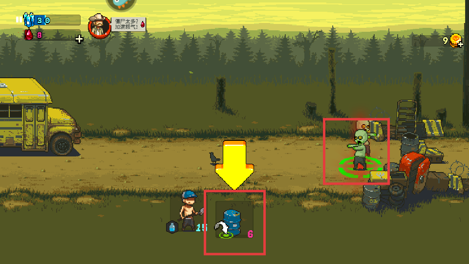 2、利用道具,攻击僵尸,推进战斗,积累战斗经验。