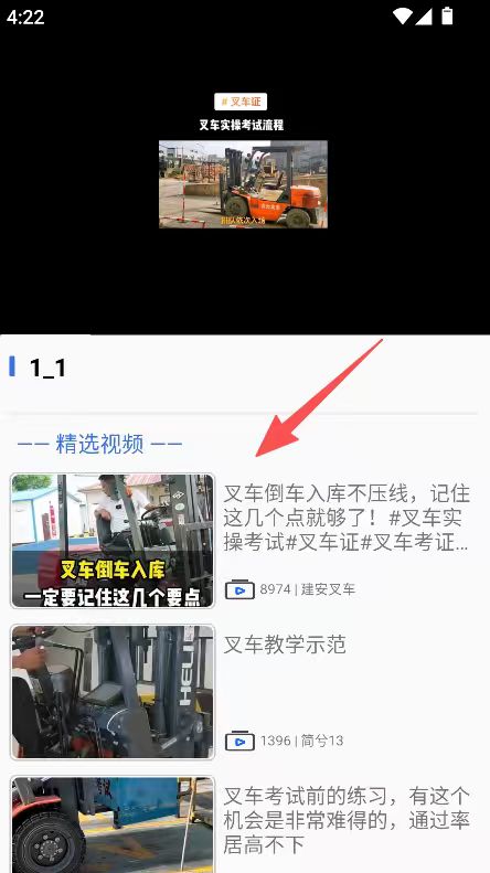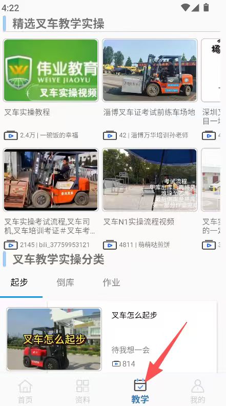 2、进入教学板块,可选择精选叉车教学实操视频,学习叉车实操技能。