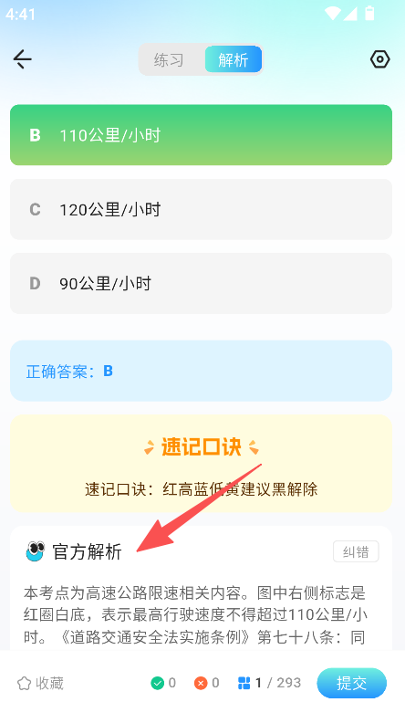 3、查看解析界面,可学习官方解析、速记口诀,掌握知识点。