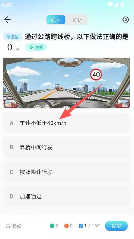 2、在练习界面,选择题目答案,完成答题。