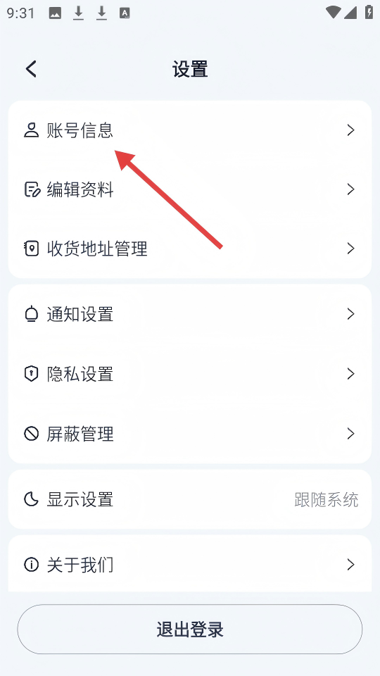 3、在设置页面点击【账号信息】,进入账号信息页面。
