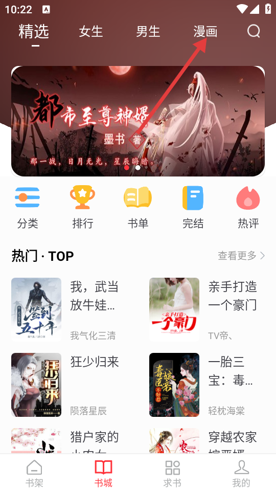 1、点击页面顶部的【漫画】标签,进入漫画频道。