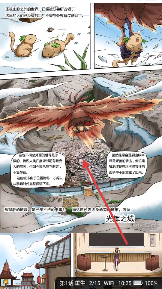 4、进入阅读页面后,即可开始阅读《妖神记》第1话【重生】的漫画内容。
