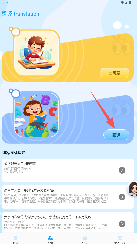 1、翻译功能,支持中英互译,输入文本获取翻译结果,助力英语翻译学习与应用。
