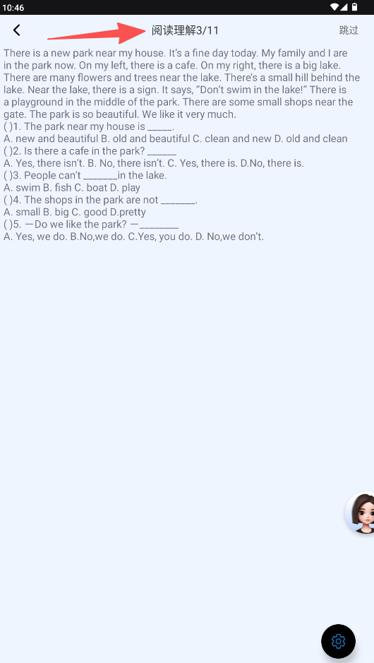 3、阅读练习功能,可进行阅读理解练习,提升英语阅读与解题能力。