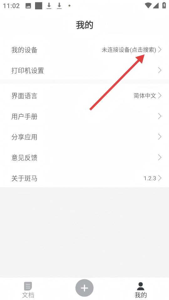 3、在【我的】页面,点击【我的设备】右侧的未连接设备(点击搜索),可进入设备连接页面。