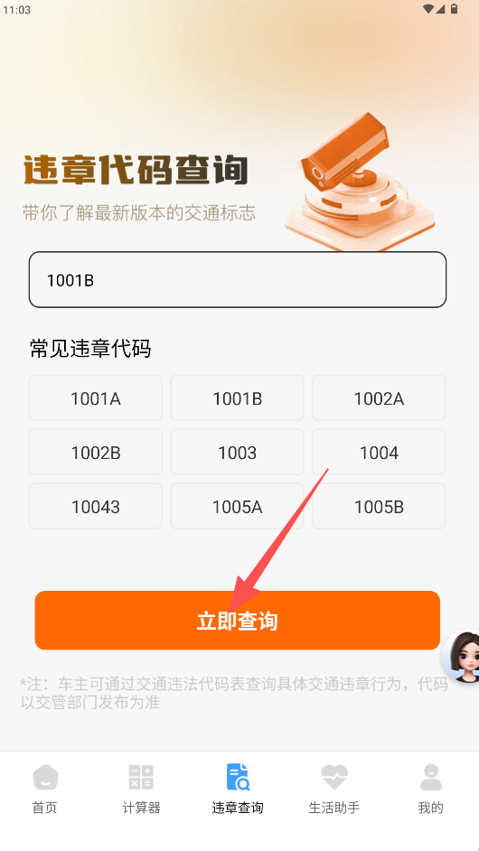 2、查询方式便捷,支持输入违章代码和选择常见违章代码两种查询方式,快速获取违章详情。
