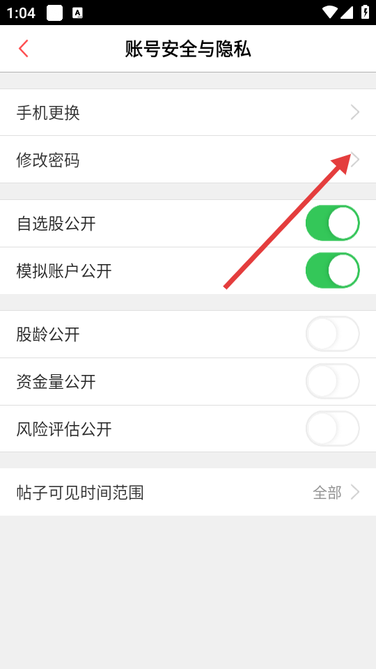 3、在账号安全与隐私页面点击【修改密码】选项。