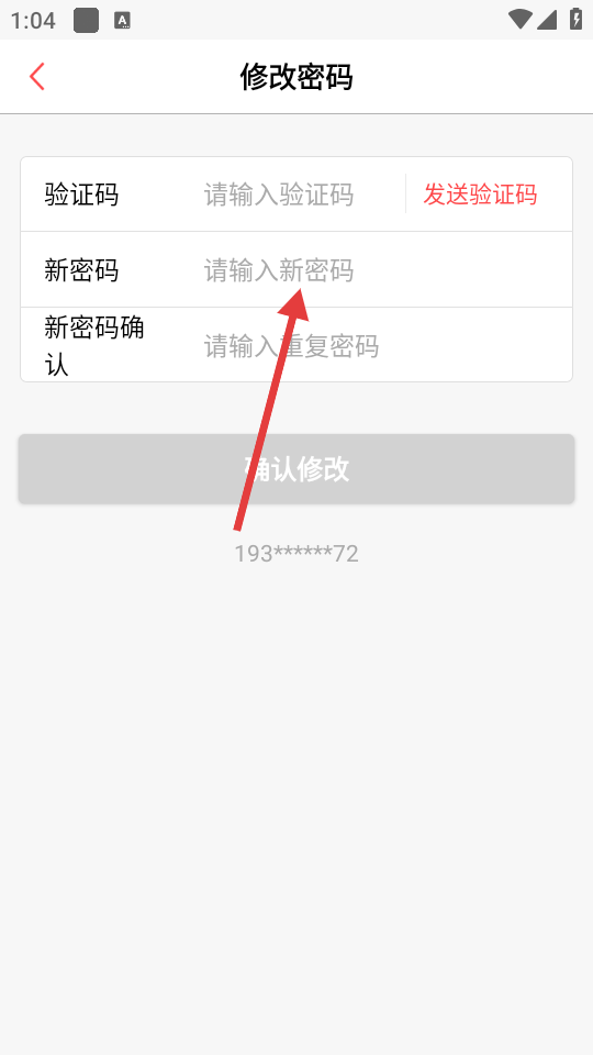 4、在修改密码页面,输入验证码、新密码并确认新密码后,点击【确认修改】按钮完成密码修改操作。