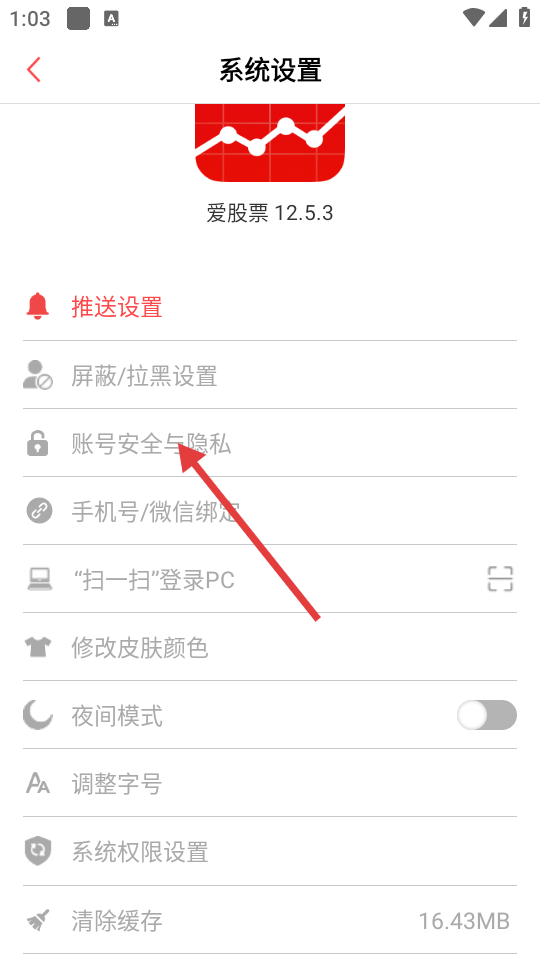 2、在系统设置页面点击【账号安全与隐私】选项并进入。