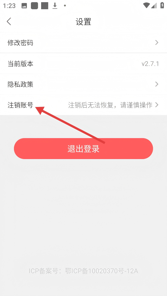 3、在设置页面点击【注销账号】可进入账号注销流程。
