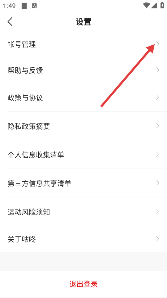 2、在设置页面中,点击【帐号管理】选项并进入。