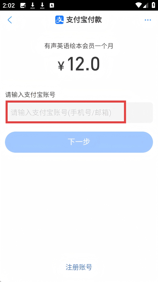 4、在支付宝付款页面输入支付宝账号后点击【下一步】可继续付款流程。