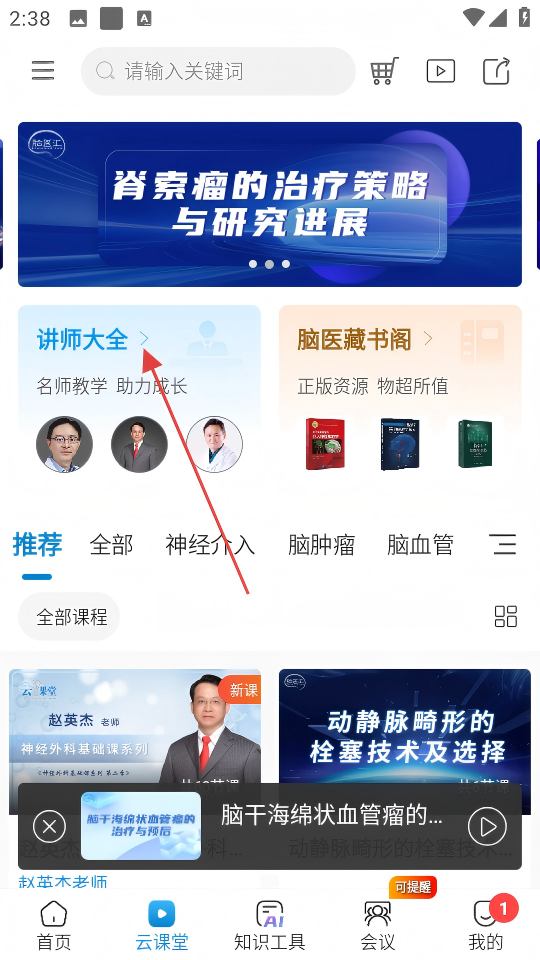 1、首页新增介入频道,聚合神经介入领域全品类内容,从病例解析到技术讲解全覆盖,满足神介医生专项学习需求。