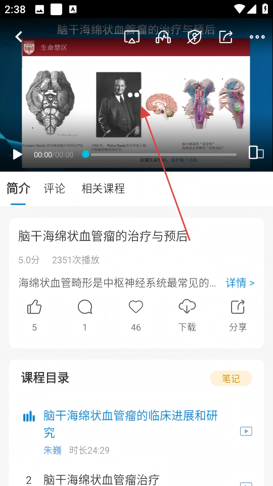 4、在课程详情页面即可观看该课程内容,还可查看课程简介、评论及相关课程等信息。