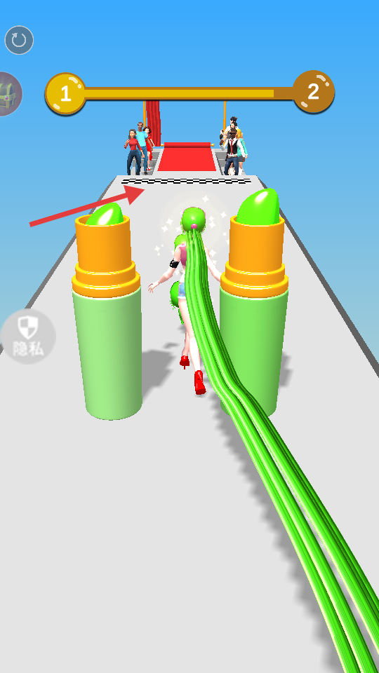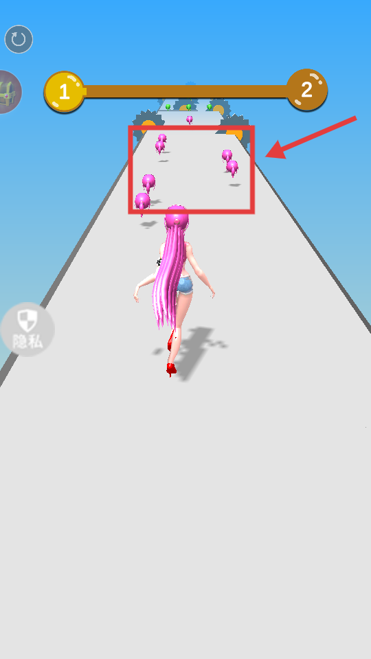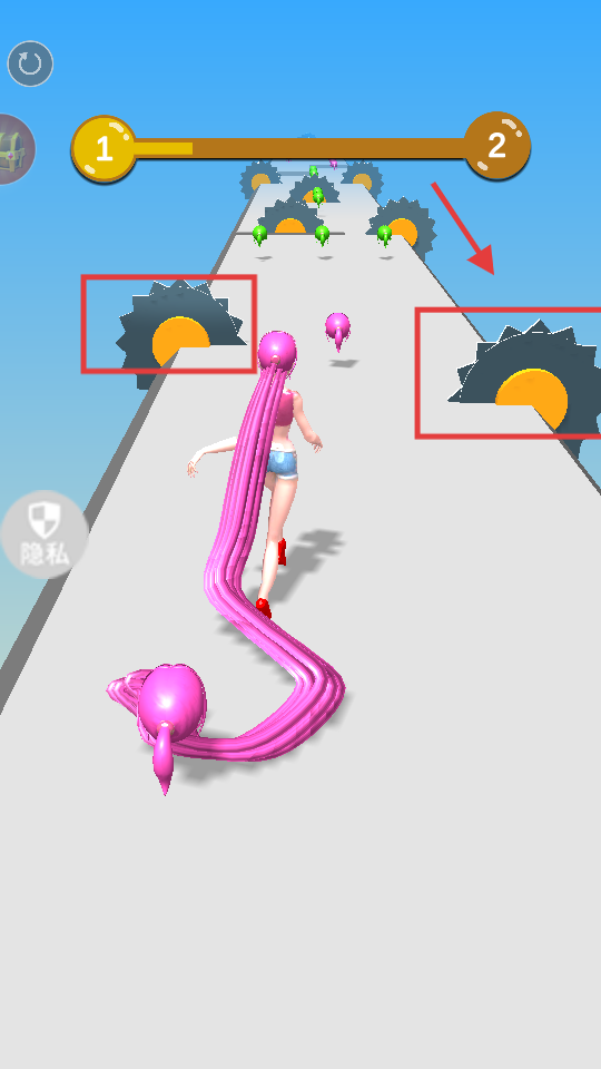 2、在赛道上操控角色收集粉色元素,增长头发长度。
